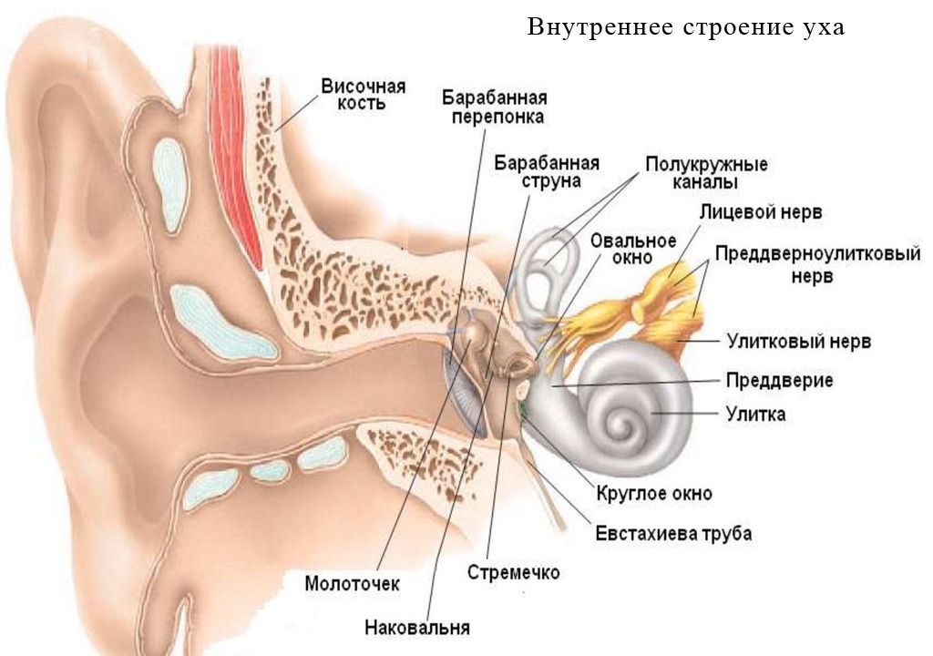 В толщине височной кости у нас имеется система полостей, образующих настоящий "лабиринт", заполненный жидкостью - эндолимфой. Это и есть наше внутреннее ухо, наш орган равновесия. Если посмотреть его строение, то в нем можно выделить улитку (орган слуха), преддверие и полукружные канальцы (орган равновесия):