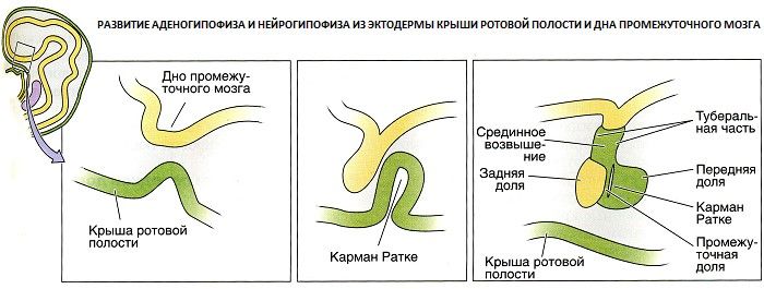 Впервые эту структуру описал немецкий эмбриолог Мартин Ратке в 1839 году. В процессе развития эмбриона из клеток ротовой полости в сторону мозга образуется выпячивание, воронка. Это и есть карман Ратке. В дальнейшем из нее образуется передняя доля гипофиза. Постепенно листки этой воронки сходятся и она спадается. Но в некоторых случаях листки кармана Ратке не смыкаются и образуется полость, заполненная гелеобразной жидкостью (см. рисунок). Это и будет киста кармана Ратке. Т.е. это врожденная аномалия, которая не является болезнью. По данным вскрытий такую аномалию находят у каждого 10-го человека. Среди здоровых молодых лиц в возрасте 18-35 лет киста кармана Ратке встречается в 3,9% случаев (http://www.ajnr.org/content/33/10/1971.long)